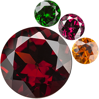 Garnet is the birthstone for January. Garnet is broken down into several groups. The main groups are: Pyrope - dark reddish-orange to dark red and purple - red Almandite - red to orangish red. purplish red to redish purple. usually darker color Spessartlte - reddish-orange to yellow-orange Rhodolite - light purplish to darker purplish red Grossularite - yellowish green Tsavorlte - light to darker green Hessonite - yellowish orange to brownish orange